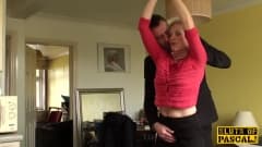 ![Jovem loira é fodida na cozinha por um homem velho Jovem loira é fodida na cozinha por um homem velho]()