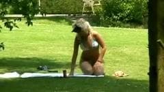 Esta loira milf gosta de se divertir ao ar livre porque ela fica com tesão e hoje ela brinca com ela mesma antes de ser fodida por seu homem!