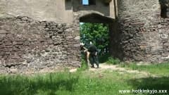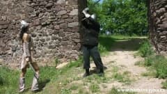 Esta morena está em uma cena onde ela deve lutar com um cavaleiro da mesa redonda, e se ela perde o duelo, ela vai ser fodida !
