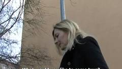 Esta loira gosta de foder e ter muito prazer. Ela conhece um homem na rua e entrega-lhe a sua rata peluda para ser bem fodida. Mamadas e penetrações !