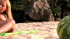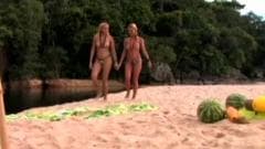 Estás duas belas loiras homossexuais tem uma bela tarde se amando apaixonadamente numa praia deserta