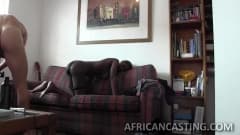 Essa neguinha gostosa decide entrar para um casting porno no sofá. Ela chupa rola e dá sua bucetinha