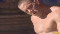 Drew Sumrok, Jason Ridge, Erik Rhodes e Mark Dalton se excitam e começam a festa mamando rola e lambendo cu na piscina numa orgia ao ar livre.