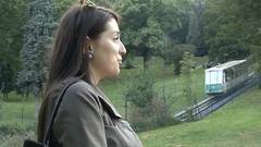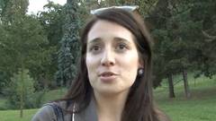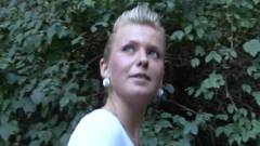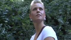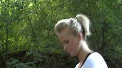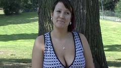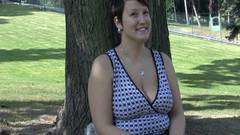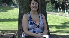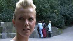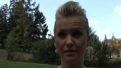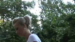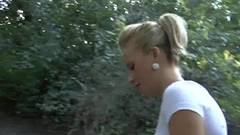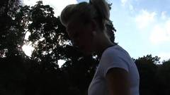 Esse cara sempre tenta sua sorte e, eventualmente, hoje é seu dia de sorte com uma puta loira que o fode em um parque.