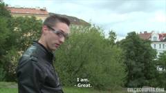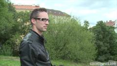 Este é um casal de tchecos, que aceitou o desafio de foder ao ar livre nesta cena. Vamos ver como eles fazem isso em troca de algum dinheiro.