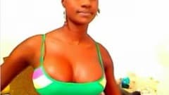 Uma garota negra peituda está excitada e ninguém está por perto. Tudo o que ela pode fazer é enfiar o punho no rabo