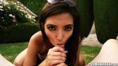 Frida Sante não vai perder esta oportunidade de chupar o pau de um homem que a grava em POV ao ar livre. Que bela cena de sexo oral!
