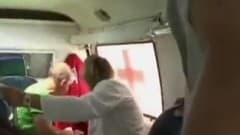 A mulher gravida a caminho do hospital começa a chupar um dos paramédicos na ambulância antes de sentar em cima do seu pau...