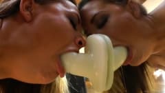 Veremos como Kelly Divine, AJ Applegate, Ashley Fires, Chanel Preston e Anikka Albrite praticam sexo oral com brinquedos sexuais.