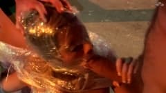Este é um momento de sexo extremo com uma mulher que será embrulhada em plástico transparente, de modo que esses caras tenham prazer com seu corpo.