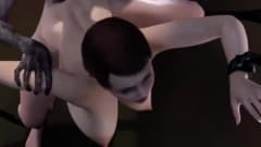 A mulher que vemos pendurada e completamente nua nesta cena hentai, quer muito sexo com esse monstro que a penetrará com prazer