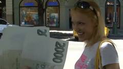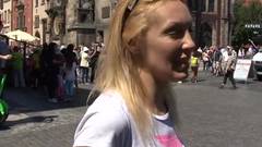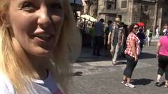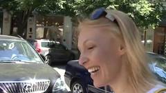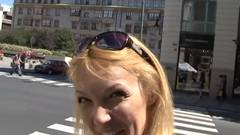 Esta é um turista loira que caminha pelas ruas até conseguir um homem que faz uma proposta sexual irresistível.