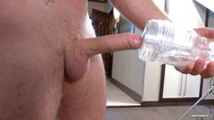 Este belo rapaz está tão excitado que não pode esperar para experimentar e desfrutar de seu novo brinquedo, Bate uma bela punheta até explodir para si
