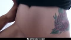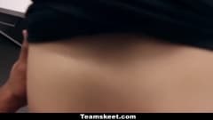 Essa bonequinha barbie foi ao banheiro retocar sua maquiagem mas acabou com um creme de esperma nutritivo em sua pele firme e brilhante.