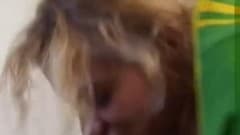A jovem loira espeta-se ela própria na bunda usando o pau desse macho antes de coletar o seu creme quente!