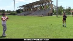 Jovem desapontada vira-se um ex-jogador para treinamento. Acontece que ela não sabe nada sobre futebol, mas tudo sobre foder sua buceta apertada