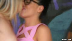 Adriana e Angel estavam lambendo buceta e masturbando com vibrador quando o cara chega de surpresa para comer as duas ninfetinhas gostosas.