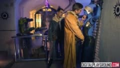 Esta é uma boa paródia sexual da série Star Wars. Esta extraterrestre capturada, faz com que eles realmente queiram foder porque ela está com tesão.