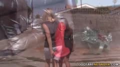 A negra aproveita que a loira está com problemas para levá-la pra casa. Lá ela faz a loira chupar a sua buceta preta e fode-a com uma cinta com pau!