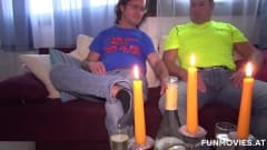 Bissexuais fodendo uma morena à luz de velas