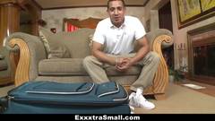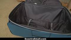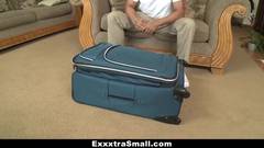 Esta linda mulher chegou a este encontro, dentro de uma mala de viagem. Quando aberta, esse cara encontrou seu futuro almoço sexual lá dentro.