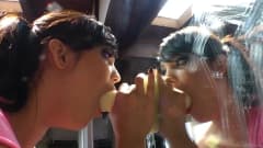 Mira, Holly Michaels, Anikka Albrite e Melody Jordan vão querer passar um momento gostoso chupando um brinquedo sexual que parece um pau de borracha.