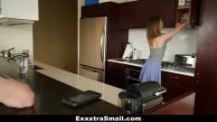 Ela é uma moça que parece ficar quente toda vez que um homem faz uma proposta, como essa que vai transar com ela ali mesmo na cozinha.