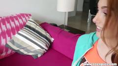 Ruiva séria fodendo com o entregador