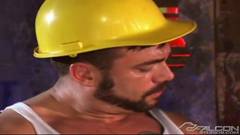 Musculados e belos trabalhadores fazem pausa para relaxar. Nada melhor para descontrair do que uma boa e demorada mamada até a esporra sair toda !