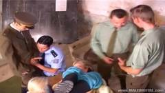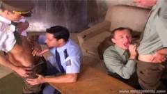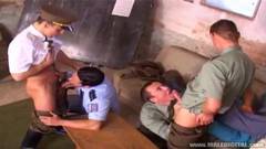 Essa loira vai ficar muito impressionada e excitada quando vir que esses soldados bissexuais estão interessados em ter um belo prazer