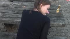 Essa linda garota não tem escrúpulos em foder e chupar pau em uma mesa de piquenique no parque.