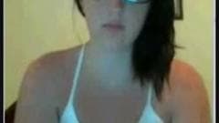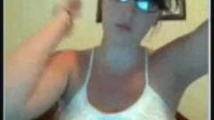 Ela está sentada na cama com seu computador na frente dela, pois ela está em um chat de vídeo muito quente em que ela vai mostrar seu corpo !