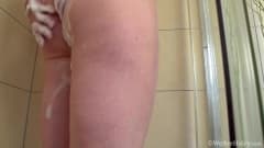 Romana Sweet é uma madura, que nunca deixa de ser quente. Ela entra no banheiro para se masturbar nua e molhar seu corpo.