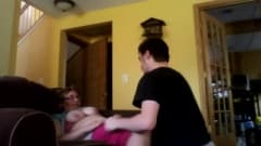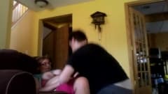 Esse cara quer dar a sua esposa um momento de prazer em casa, e ele a surpreende enquanto ela está na sala. Vai transar com ela como merece.
