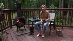 A bela loira que vemos nessa cena de masturbação ao ar livre é a linda Kylie Nicole. Você não vai parar de gozar quando a vir nua.