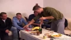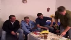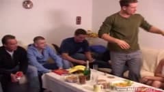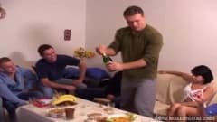Durante uma festa de aniversário esses bissexuais vão se divertir muito fazendo sexo com uma linda morena que pode ficar com ciúmes do que fazem entre eles