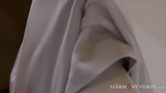 A gostosa sai do banho e o cara vem para beijá-la. Ela começa pagando um boquete, é fodida com força , é chupada, masturbada, e fazem 69... Que delícia!