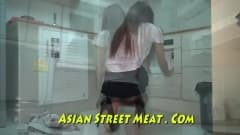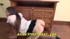 Empregada asiática fofa será usada para testar artefatos de escravidão de um cara que a sujeitará a foder loucamente na bunda