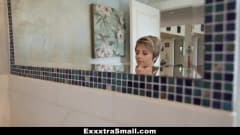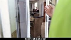 Essa mocinha queria ajuda com os pratos do café da manhã. Ela chama um grandão para ajudar e recebe um grande pau para foder e chupar e muita porra na boca