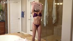 Uma madrasta sexy descobre que seu enteado bonito a está espionando enquanto toma banho. Veja como eles acabam fodendo em todos os lugares.