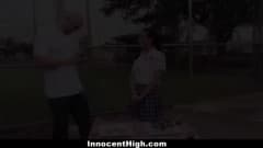 Esse cara encontrou uma boa aluna inocente que vende bolos na rua. Então ele propõe ir a um lugar privado para descobrir sexo.