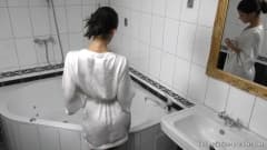 Uma morena extravagante acaricia seu belo corpo e sua buceta suculenta enquanto toma um banho relaxante com espuma. Você não pode perder esta cena