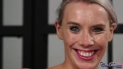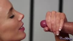 Uma policial loira e muito safada fode um prisioneiro que ejacula e deixa o rosto cheio de leite. Você vai adorar safadão