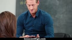 Essa jovem aluna mexe no celular durante a aluna. Ela é surpreendida pela professor que vai puni-la de uma forma bem gostosa.