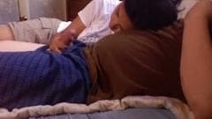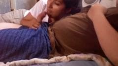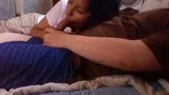 Essa linda morena vai se divertir com um cara que deixa ela chupar seu pau em um encontro sexual em que ela tenta deixá-lo excitado até explodir