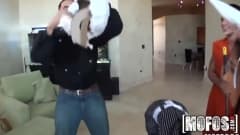 Um grupo de jovens cheios de tesão fazem uma festa em que garotas sexys se beijam, duas safadas patilham um pau, e outra da o cuzinho bem gostoso!