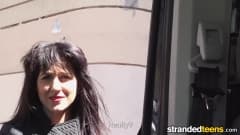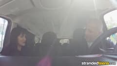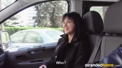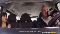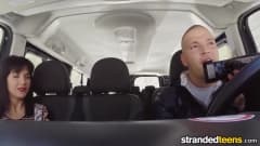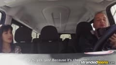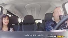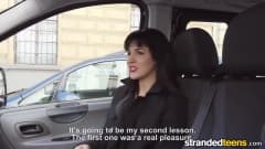 Esta linda morena quer ir para sua aula de autoescola, mas é uma outra que o motorista vai oferecer. Depois do boquete, eles fodem no banco de trás!
