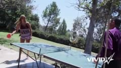 Essa loira safada está cheia de vontade de dar para o melhor amigo do pai. Depois do ping pong, ela leva o cara para sofá para brincar com seus peitões!
