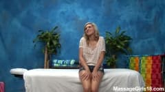 Lily Banks é uma doce jovem loira que gosta de fazer massagens com final feliz! Ela trepa no pau do cliente na mesa de massagem e leva gozada facial!