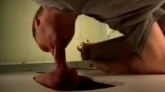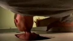 Esse cara fica animado quando ele vê um buraco na parede e hoje ele tem sorte porque ele consegue um pau para chupar através disso!